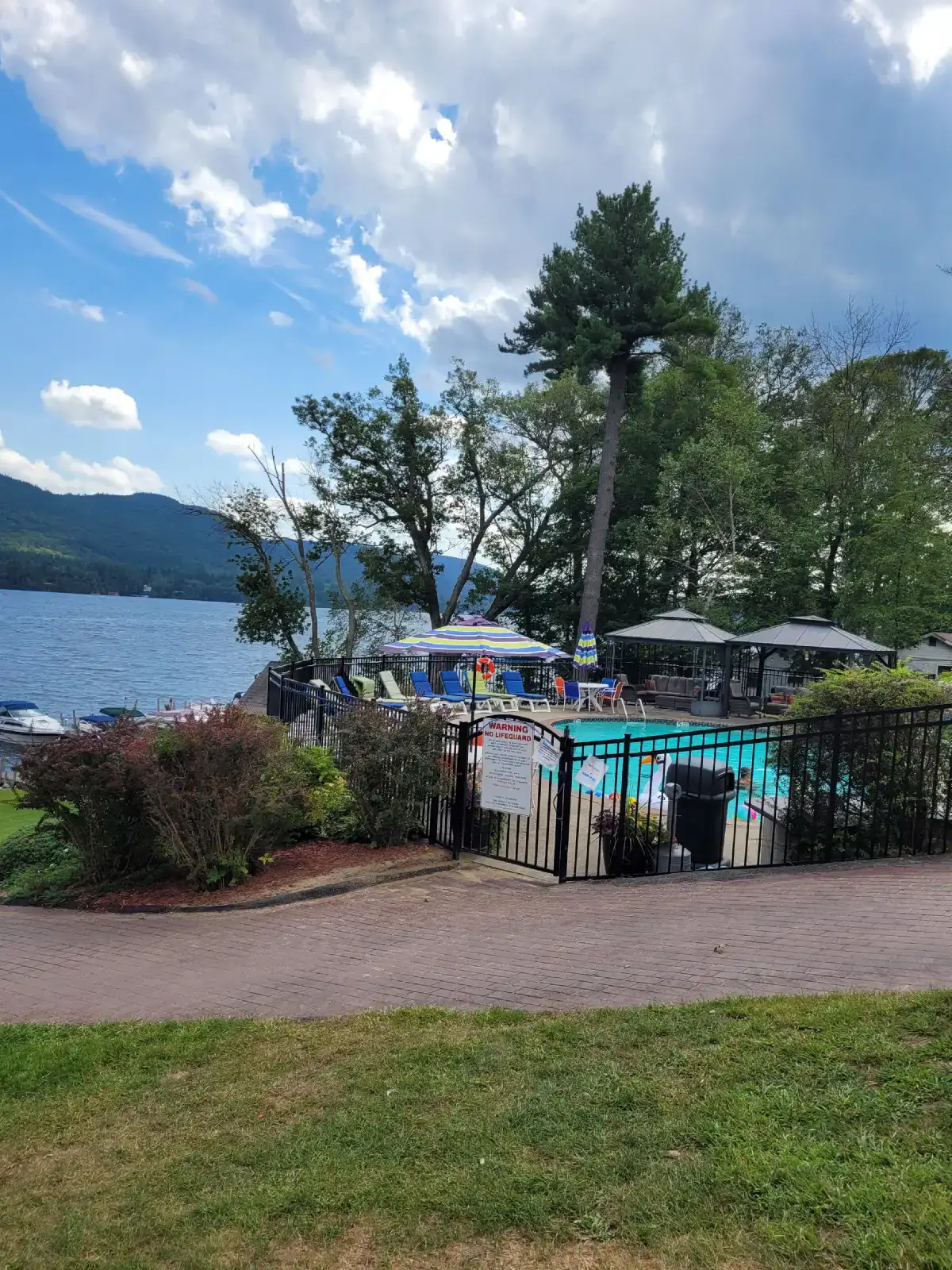 Our pool and hot tub area is a great place to relax, exercise, and enjoy the spectacular views of the lake. For those of you who would like to explore the lake hop on one of our free rowboats, paddleboards, paddleboats, canoes, or kayaks. The playground and free play gameroom will keep the kids occupied for hours. Feel free to use the ping pong table, shuffleboard, basketball, badminton, volleyball and the horseshoe pit.